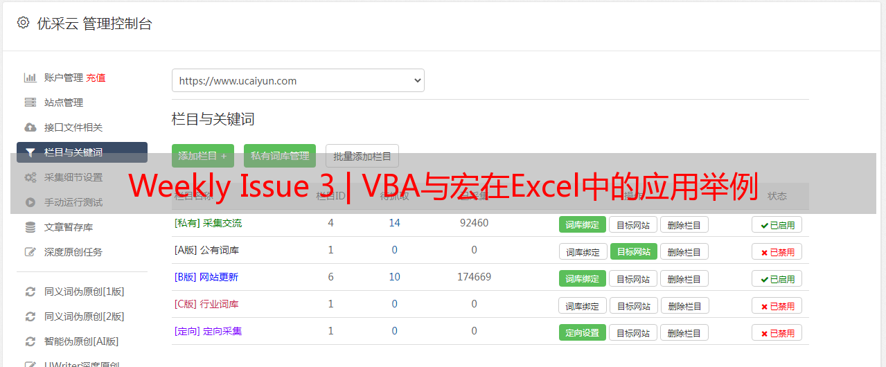 优采云 发布时间: 2022-07-24 03:28Weekly Issue 3 | VBA与宏在Excel中的应用举例