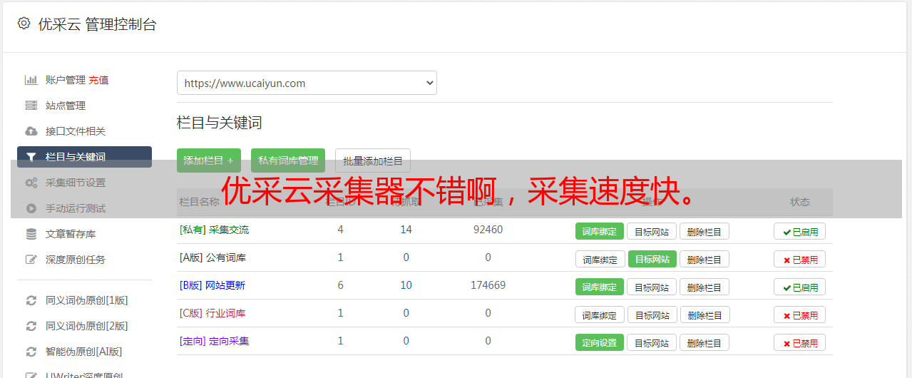 优采云采集器不错啊,采集速度快。