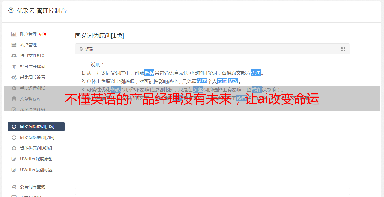 优采云 发布时间: 2022-07-25 18:06不懂英语的产品经理没有未来,让ai改变命运