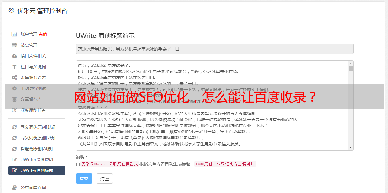 优采云 发布时间: 2022-07-26 09:02网站如何做SEO优化,怎么能让百度收录?