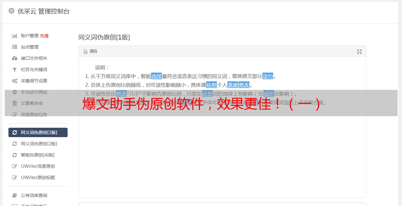 优采云 发布时间: 2022-07-26 13:03爆文助手伪原创软件,效果更佳!(一)