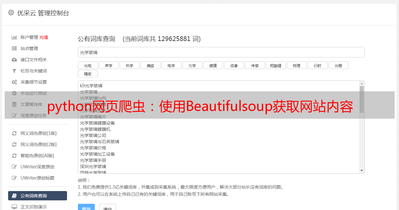 优采云 发布时间: 2022-07-28 21:45python网页爬虫:使用Beautifulsoup获取网站内容