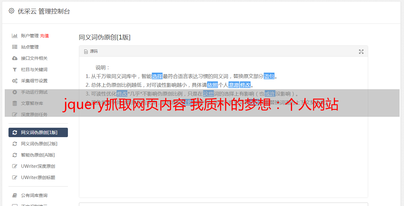 优采云 发布时间: 2022-07-30 14:29jquery抓取网页内容 我质朴的梦想:个人网站