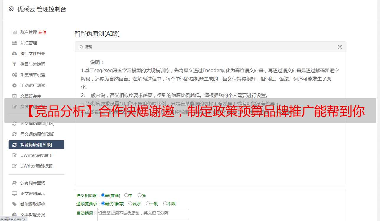 优采云 发布时间: 2022-07-31 01:03【竞品分析】合作快爆谢邀,制定政策预算品牌推广能帮到你