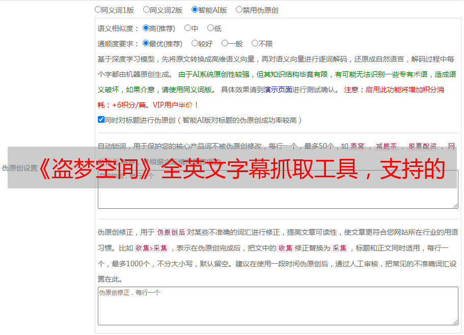 优采云 发布时间: 2022-08-01 11:02《盗梦空间》全英文字幕抓取工具,支持的