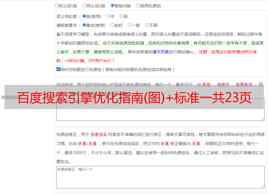 优采云 发布时间: 2022-08-04 14:06百度搜索引擎优化指南(图)+标准一共23页