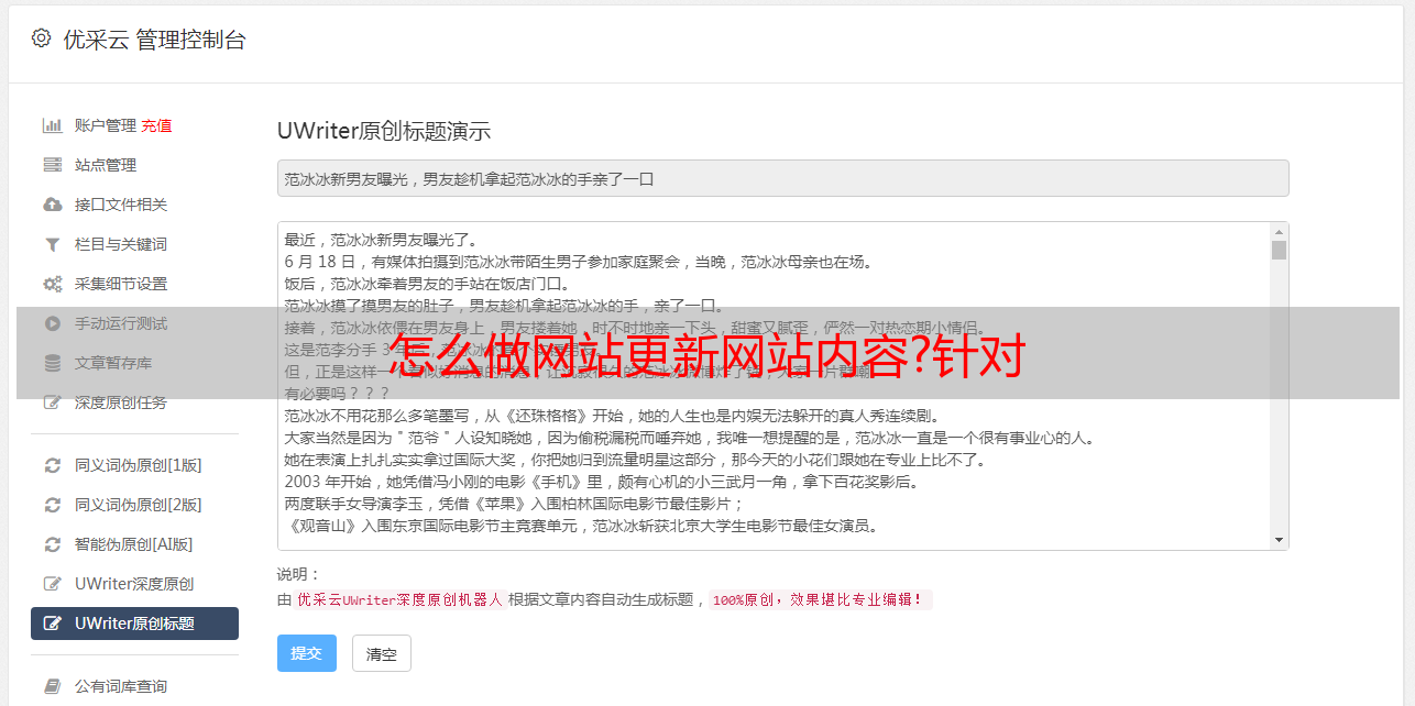 优采云 发布时间: 2022-08-04 21:05怎么做网站更新网站内容?针对