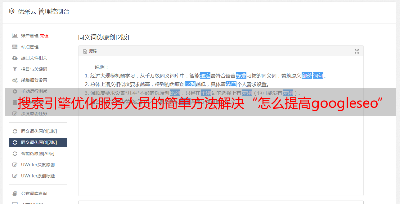 优采云 发布时间: 2022-08-08 00:05搜索引擎优化服务人员的简单方法解决“怎么提高googleseo”问题