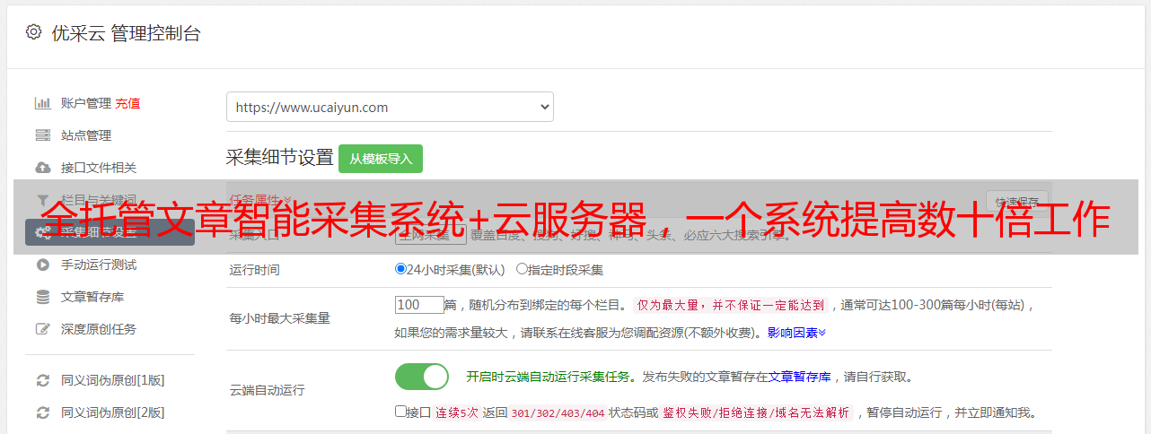 全托管文章智能采集系统+云服务器,一个系统提高数十倍工作效率