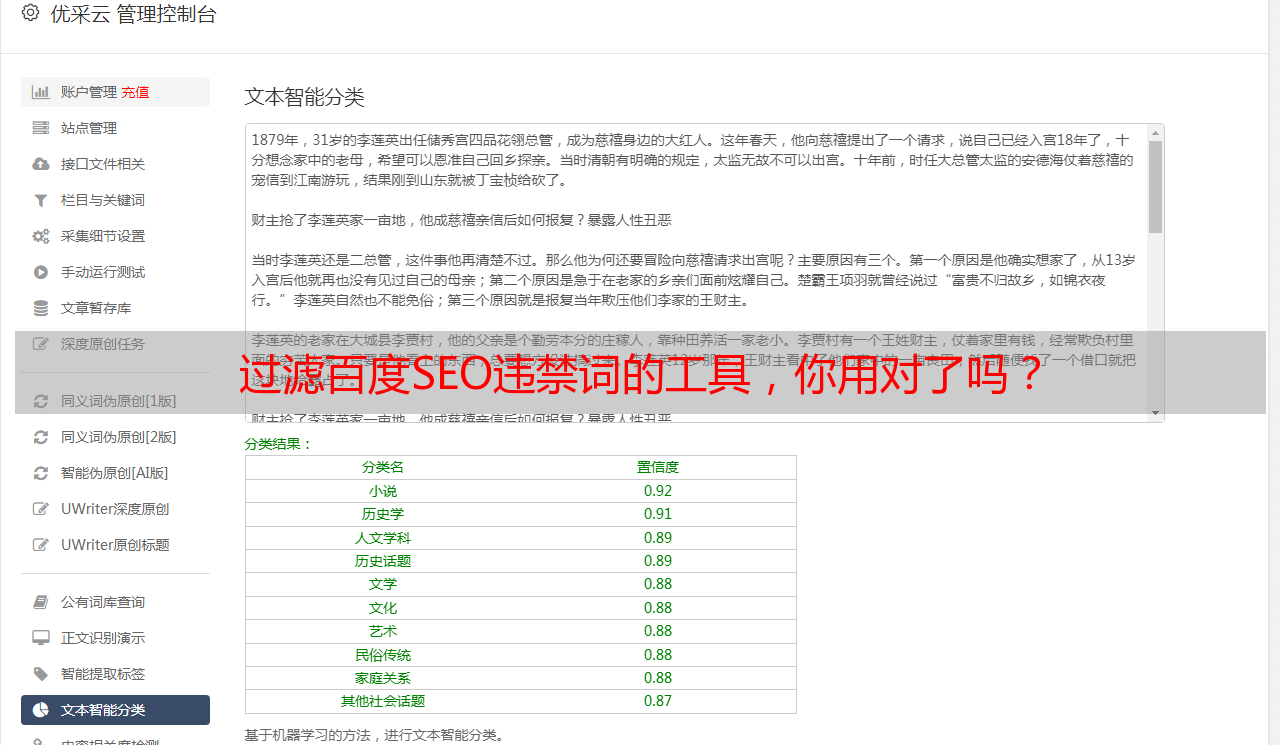 优采云 发布时间: 2021-05-23 01:05过滤百度SEO违禁词的工具,你用对了吗?