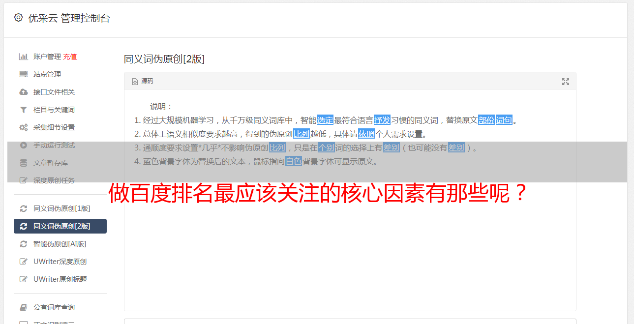 目前,百度搜索引擎优化是许多网站站长最关注的问题。百度搜索引擎是中国使用最广泛的搜索引擎。这也是seoers正在看的大蛋糕。竞争已经变得很激烈。百度算法1变更和变更使许多网站管理员不知所措。那么,百度排名中应该注意哪些核心因素。作者和每个人都会一一分析和解释它们。