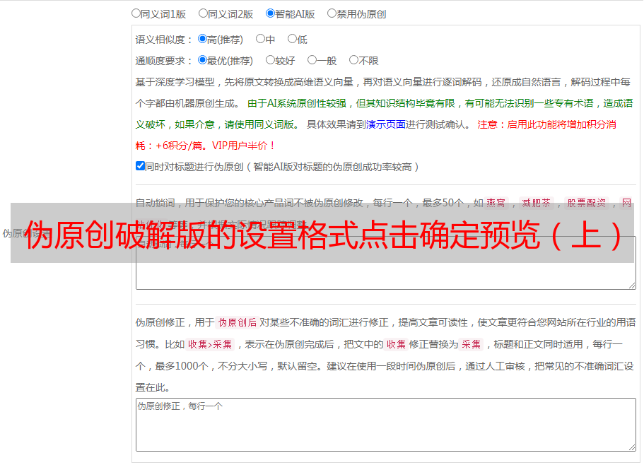 伪原创破解版的设置格式点击确定预览(上)