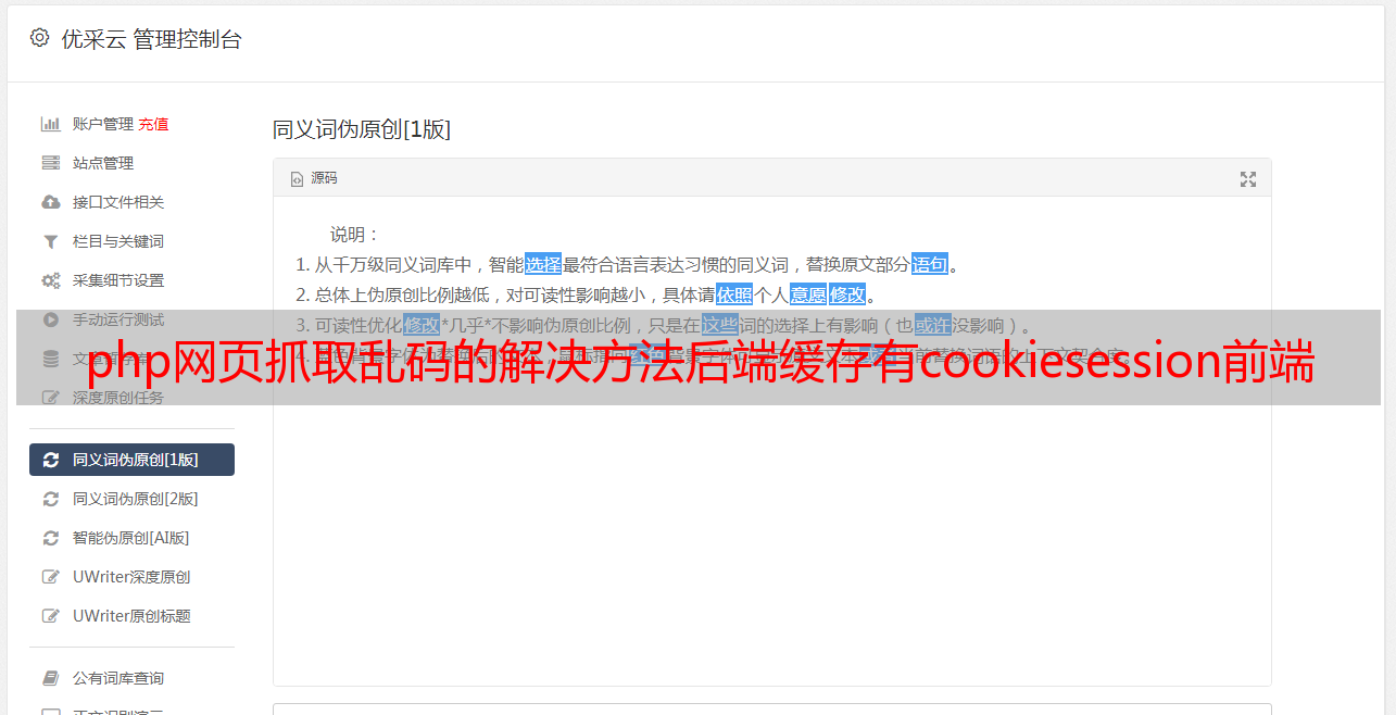 优采云 发布时间: 2022-08-12 04:00php网页抓取乱码的解决方法后端缓存有cookiesession前端