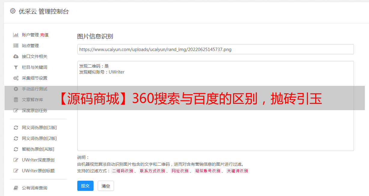 优采云 发布时间: 2021-05-23 02:17【源码商城】360搜索与百度的区别,抛砖引玉