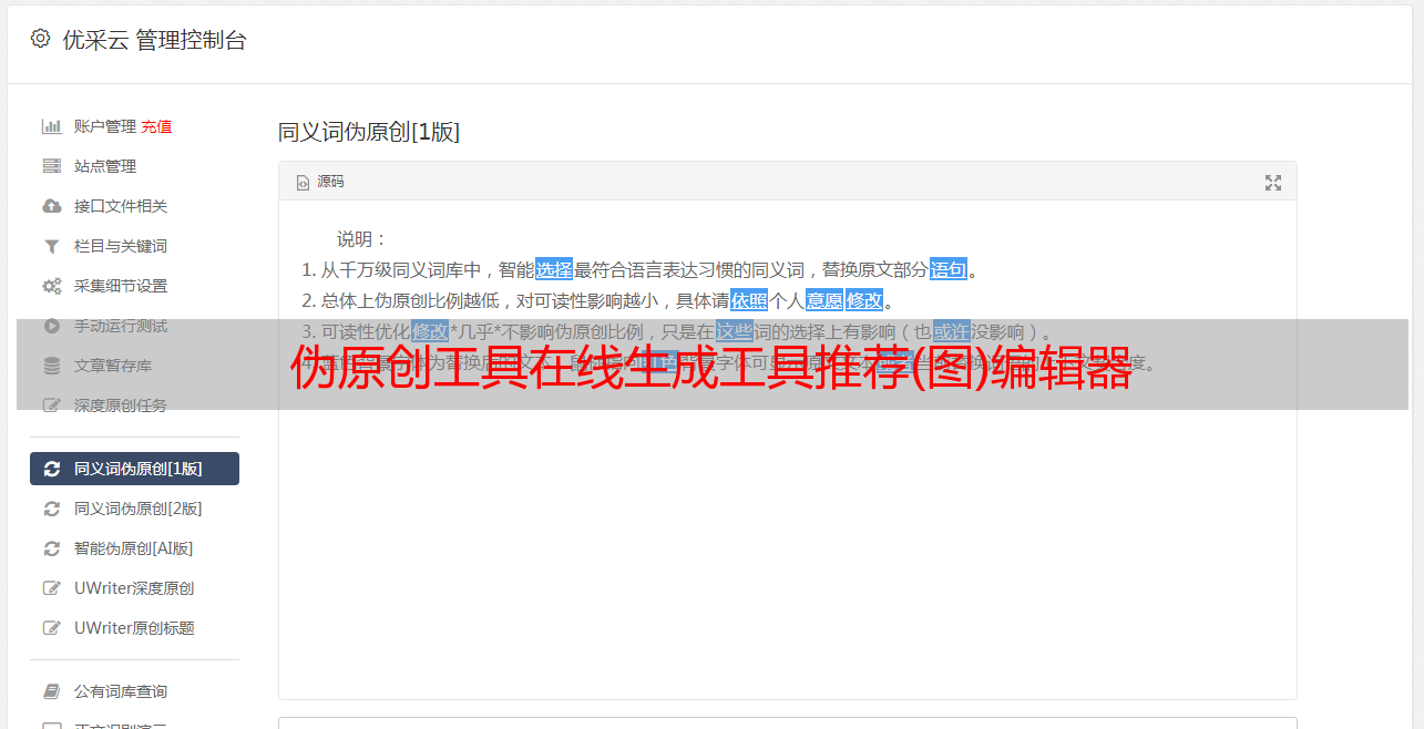 优采云 发布时间: 2022-08-14 04:01伪原创工具在线生成工具推荐(图)编辑器