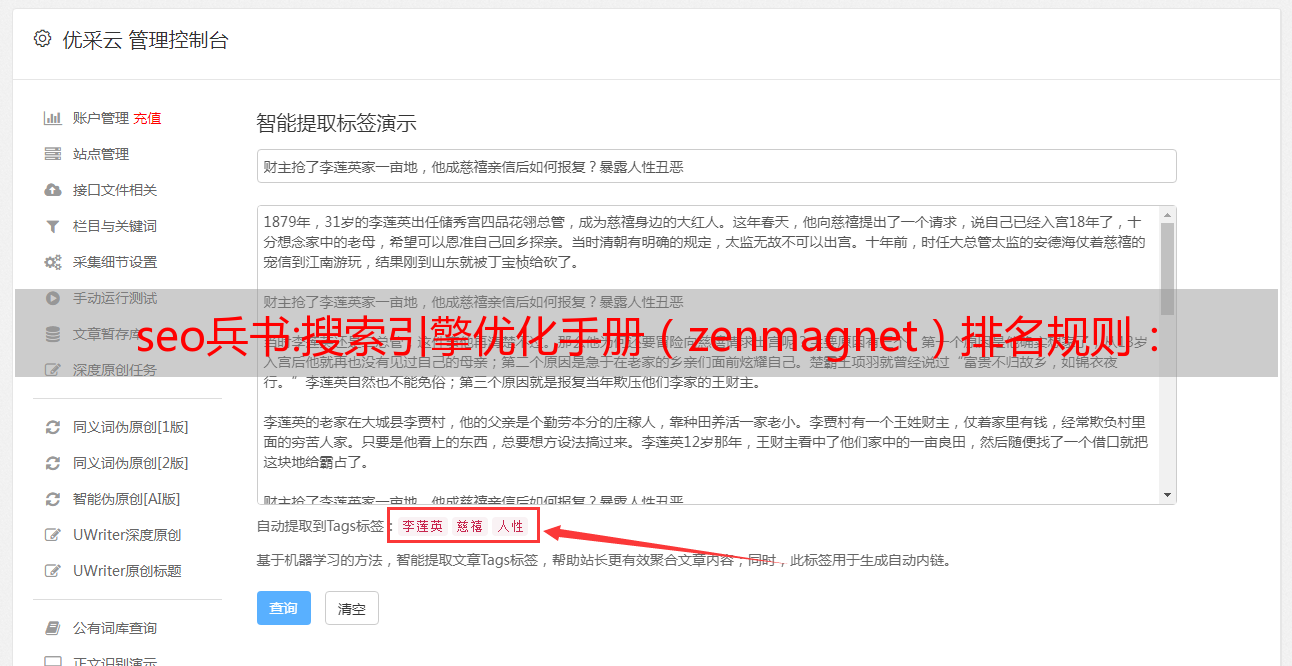 优采云 发布时间: 2022-08-15 12:01seo兵书:搜索引擎优化手册(zenmagnet)排名规则: