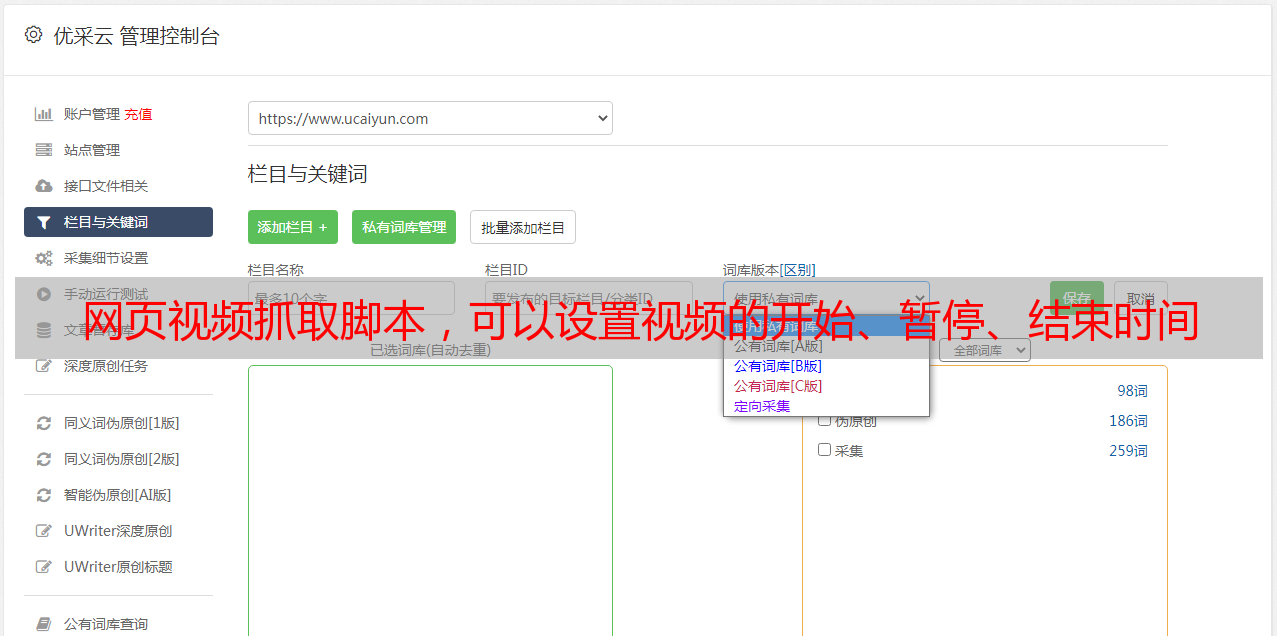优采云 发布时间: 2022-08-17 22:00网页视频抓取脚本,可以设置视频的开始、暂停、结束时间