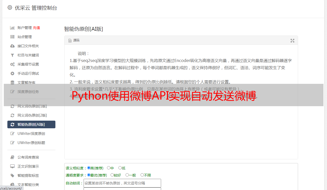 优采云 发布时间: 2022-08-18 14:17Python使用微博API实现自动发送微博