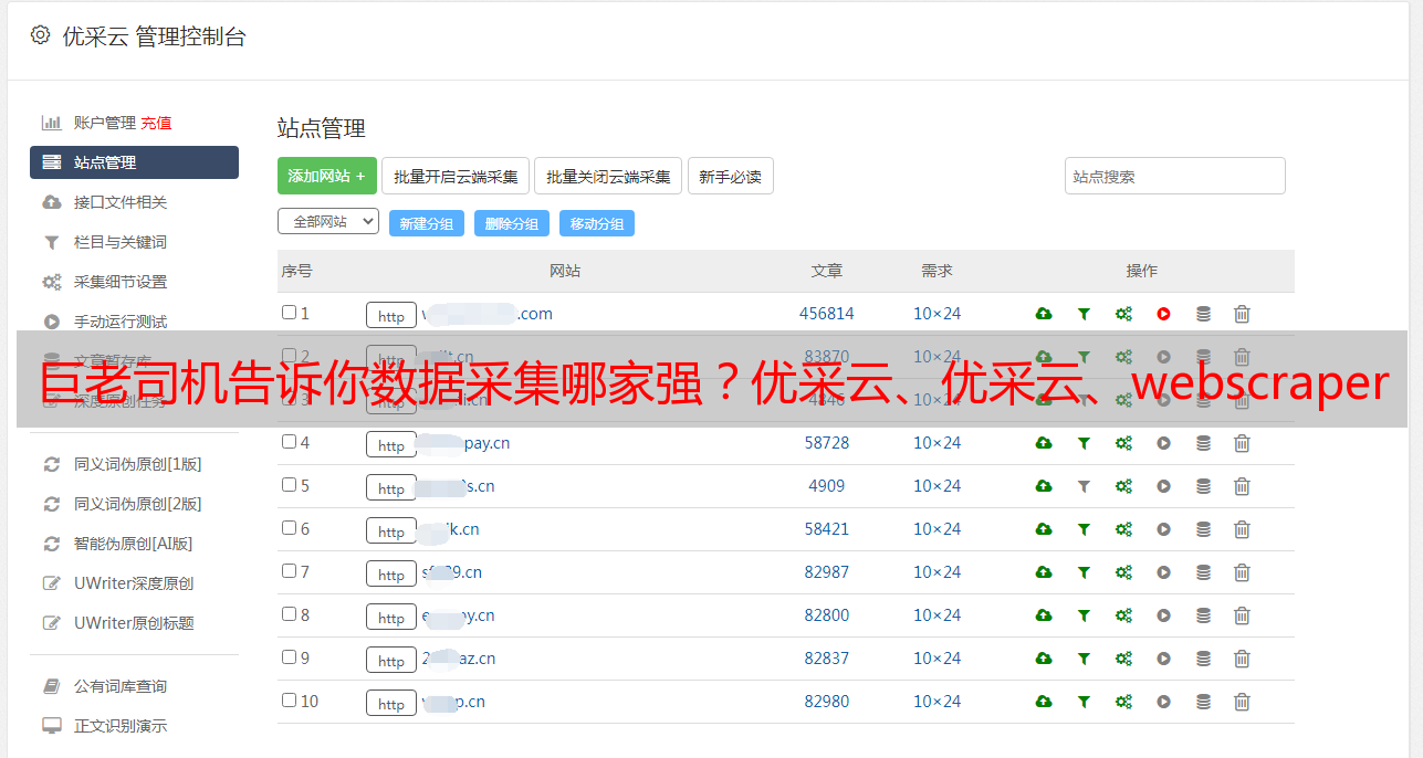 如果让我推荐一款最具普适性的采集器,我的推荐就是优采云(没收*敏*感*词*,我自己也几乎不用优采云了)。知乎上、微信公众号上,很多人推荐 webscraper ,无外乎学习门槛低,功能强大,免费这三个特点。学习门槛低、功能强大是不成立的。免费确实是免费,优采云、优采云采集的免费版也是能满足绝大多人的需求了。如果你想使用付费版,一些增值收费功能,也确实是 webscraper 无法提供的