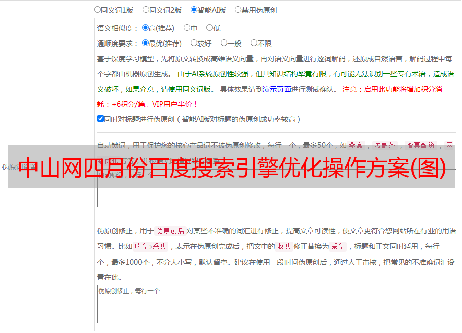 优采云 发布时间: 2022-08-24 11:25中山网四月份百度搜索引擎优化操作方案(图)