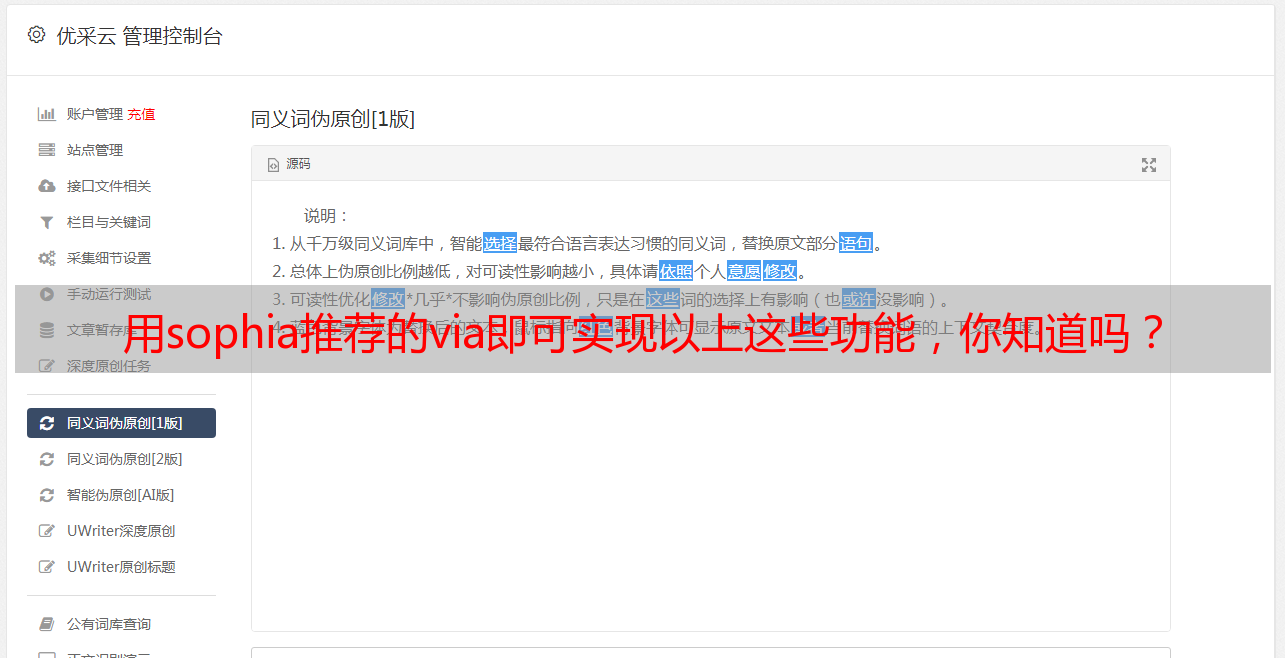 网站编辑伪原创工具via:theend如果编辑想要实现伪原创的效果,通常有三种方法:1.添加对话框原文地址等在后台进行编辑,现在这种方法比较普遍,方法简单,可以自由移动。2.利用公众号平台登录编辑,可以方便后期的二次编辑。3.利用语言编辑器的截图编辑,这种方法比较常见,但是效果不如第一种方法。用sophia推荐的via即可实现以上这些功能,下面我会一步步将其讲解出来。