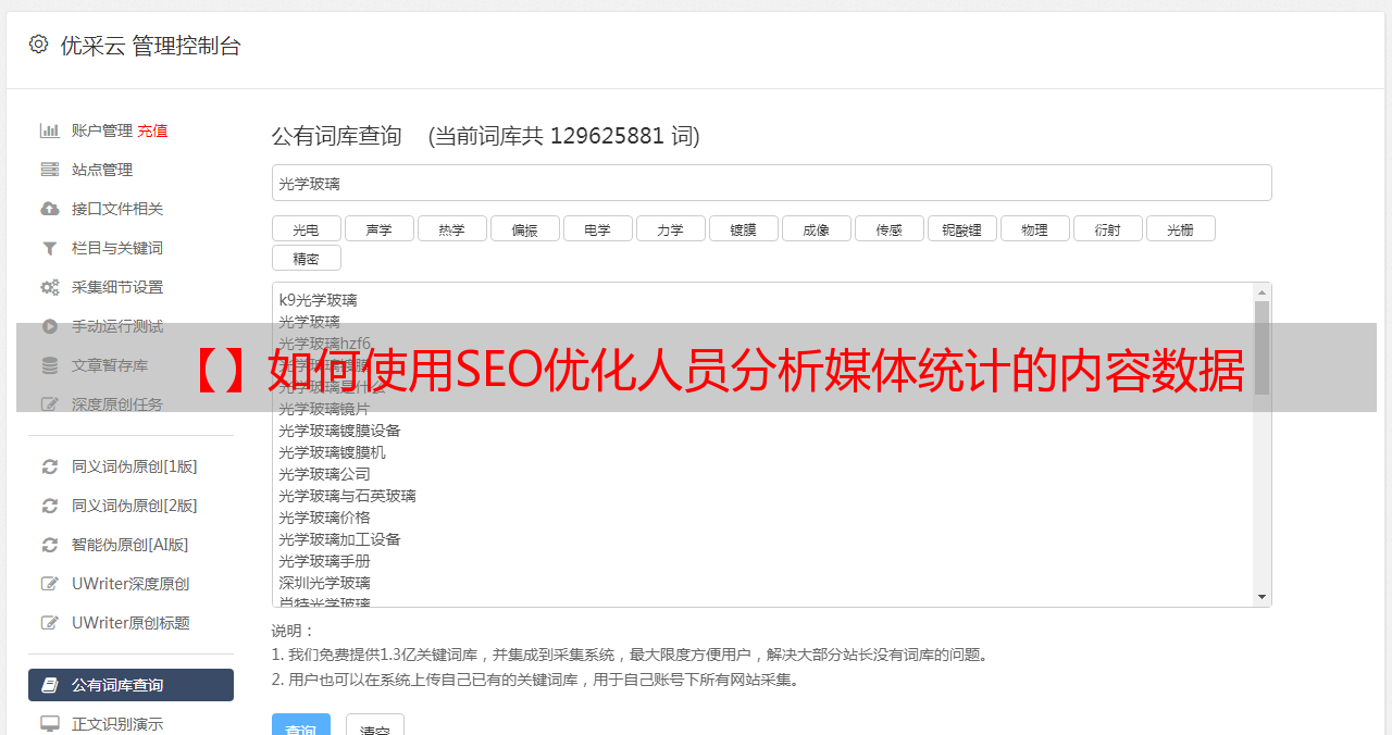 优采云 发布时间: 2021-05-23 19:22【】如何使用SEO优化人员分析媒体统计的内容数据