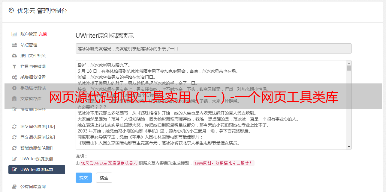 优采云 发布时间: 2022-09-05 08:02网页源代码抓取工具实用(一)-一个网页工具类库