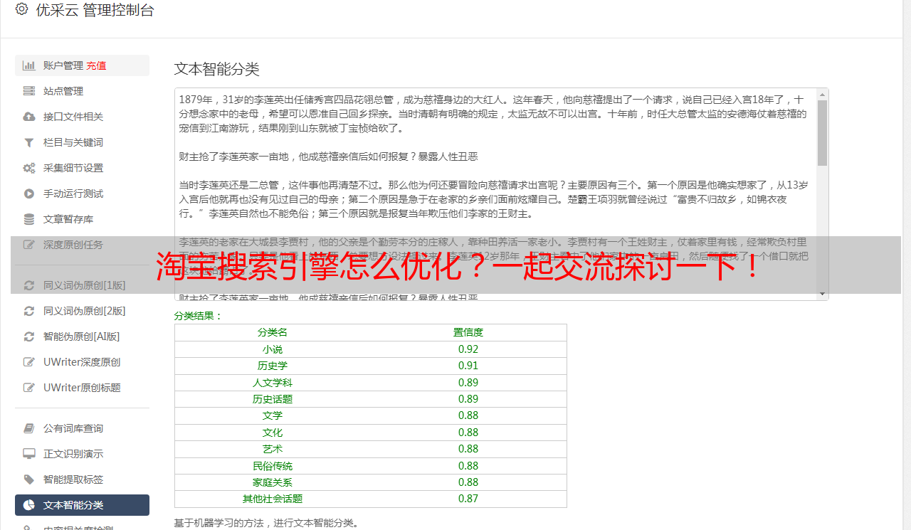 优采云 发布时间: 2022-09-06 08:01淘宝搜索引擎怎么优化?一起交流探讨一下!