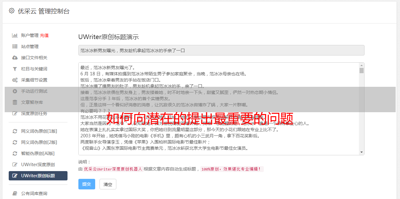 虽然获得第一名是完全理想的结果,但没有人能保证它会真正发生。不是我没有尽力而为。相反,影响排名的因素太多,没有人能熟练地控制所有因素。可能有200多个度量值会影响网站的排名。即使有人可以绝对证明百度的算法完全由一些已知指标组成,但他们也无法控制所有因素。