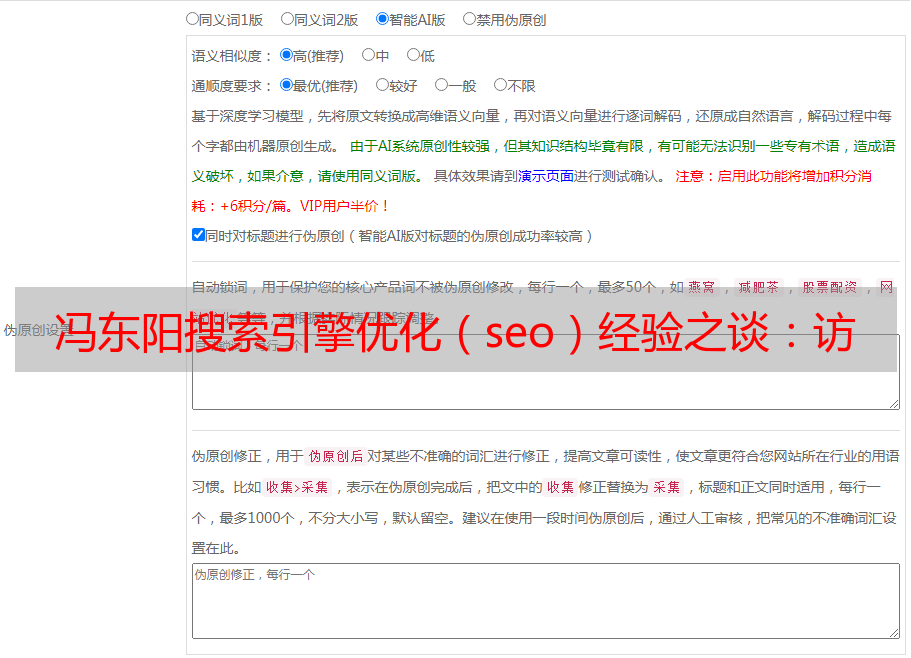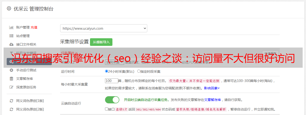 优采云 发布时间: 2022-09-18 04:02冯东阳搜索引擎优化(seo)经验之谈:访问量不大但很好访问