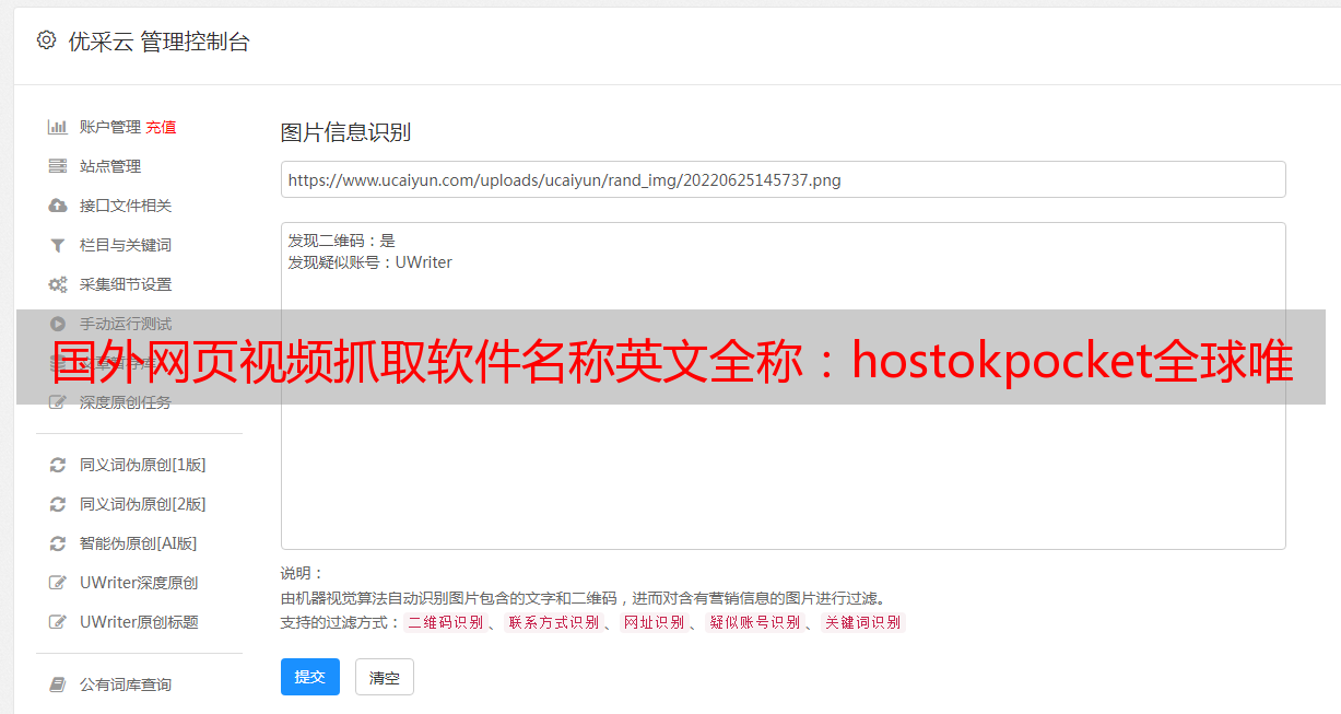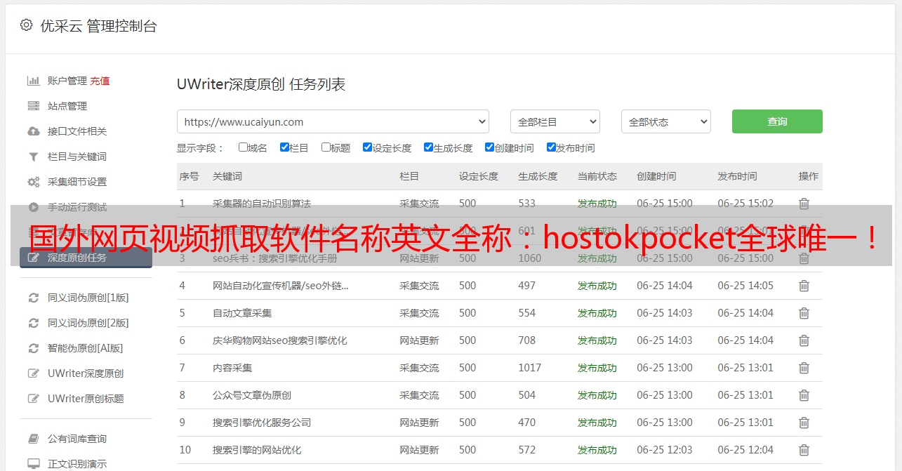 优采云 发布时间: 2022-09-18 21:05国外网页视频抓取软件名称英文全称:hostokpocket全球唯一!