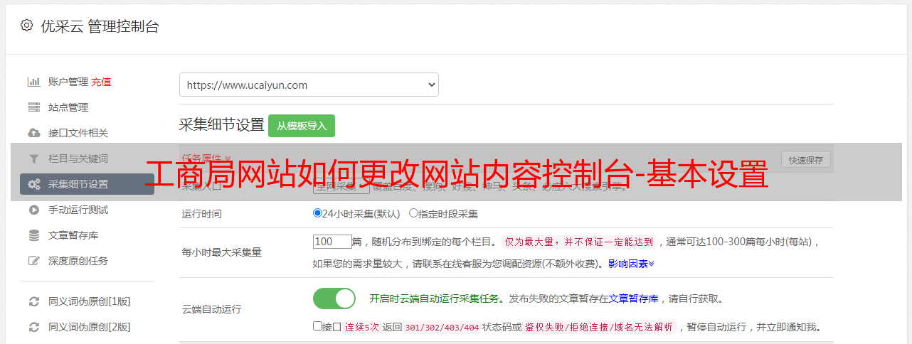 优采云 发布时间: 2022-09-19 01:01工商局网站如何更改网站内容控制台-基本设置