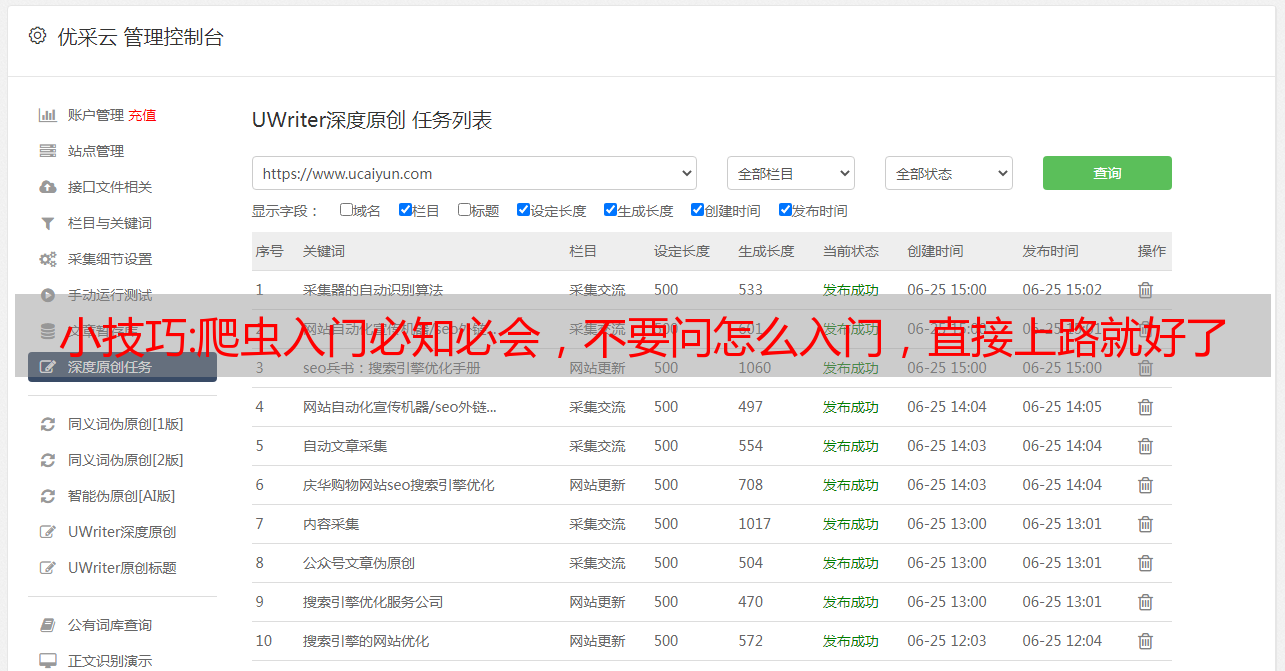 优采云 发布时间: 2022-09-23 13:09小技巧:爬虫入门必知必会,不要问怎么入门,直接上路就好了