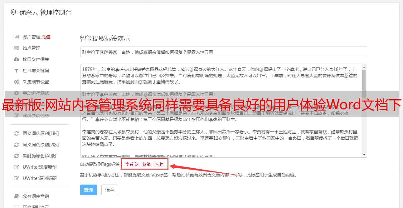 优采云 发布时间: 2022-09-24 08:15最新版:网站内容管理系统同样需要具备良好的用户体验Word文档下载推荐.docx
