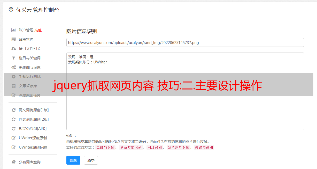 优采云 发布时间: 2022-09-24 11:14jquery抓取网页内容 技巧:二.主要设计操作