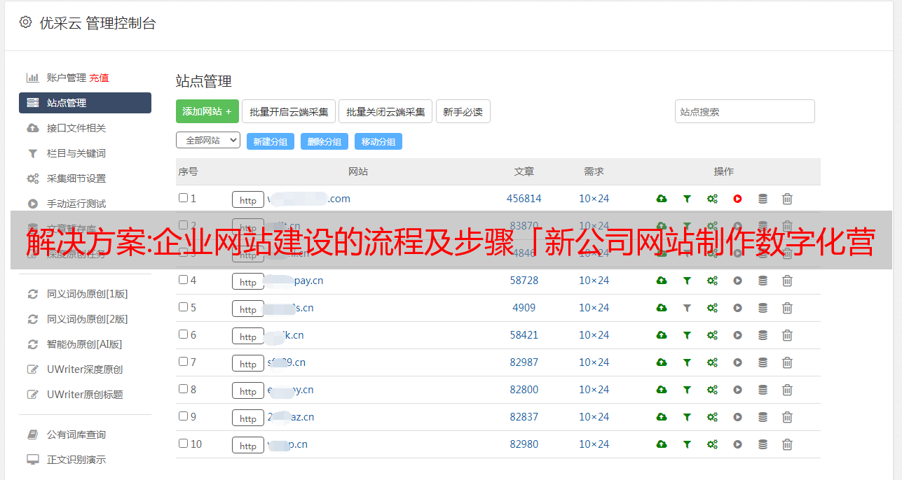 优采云 发布时间: 2022-09-24 16:21解决方案:企业网站建设的流程及步骤「新公司网站制作数字化营销方案」是什么?【持续更新中】