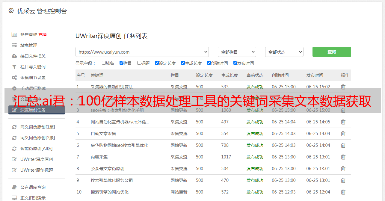 汇总:ai君:100亿样本数据处理工具的关键词采集文本数据获取