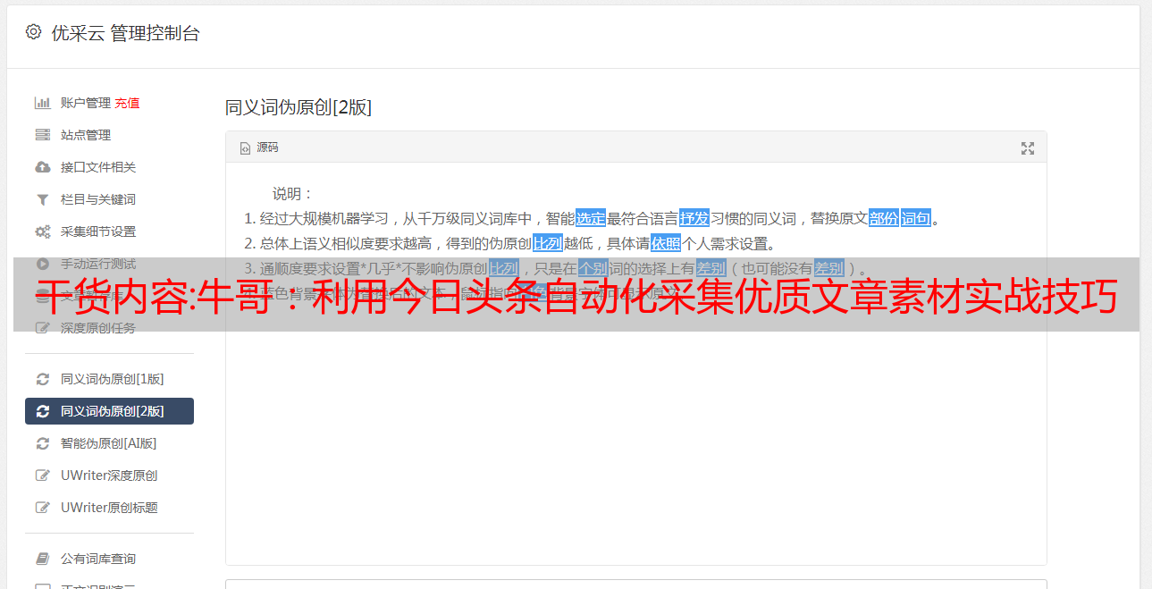 干货内容:牛哥:利用今日头条自动化采集优质文章素材实战技巧