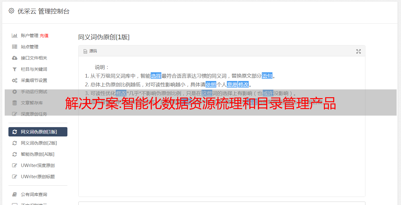优采云 发布时间: 2022-09-27 12:17解决方案:智能化数据资源梳理和目录管理产品