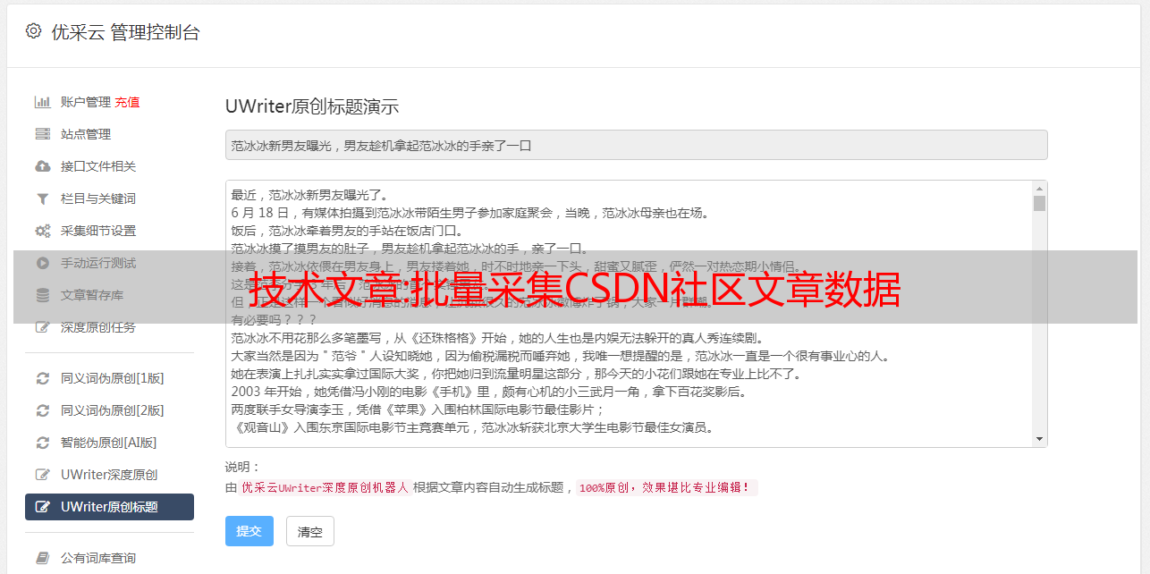 优采云 发布时间: 2022-09-27 21:17技术文章:批量采集CSDN社区文章数据