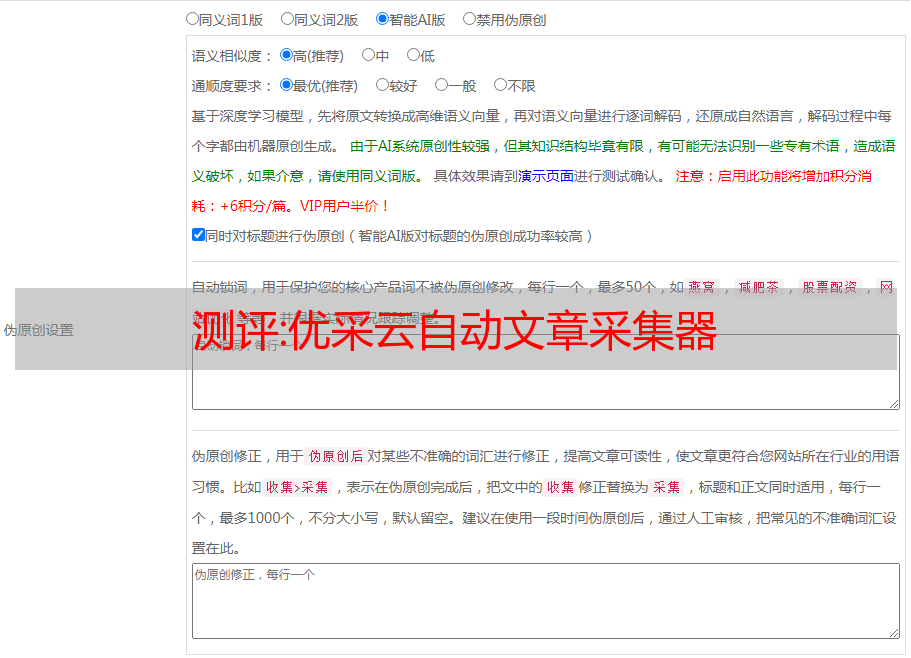 提供亿+量级的庞大关键词库,可根据用户输入的任意文本搜索关键词,简单查询后即可用于采集 ,大大减少了用户采集关键词的时间和精力。用户还可以创建自己的私有词库,可以分组,百万关键词轻松管理,也满足更多个性化关键词需求。按关键词采集文章,基于百度、搜狗、好搜等搜索引擎,全网采集精美好文章,用户无需花钱寻找采集能量的来源。自动识别网页代码、标题、文字等信息,无需为每个网站设置不同的采集规则,更何况到处找人写采集规则,不知道html源码,完全零维护。可以设置需要的文字长度,比如500字、750字、1000字,不符合标准的内容会被自动丢弃。系统内置多种自然语言处理算法,自动计算文章文本与关键词的相关性(特征向量间的余弦距离),自动过滤掉文章 具有低相关性。将高度相关的 文章 留给用户。自动计算文章文本的流畅度(语言困惑度),丢弃流畅度低的文章,将流畅度高的文章留给用户。自动计算 Title 和 Description 与 关键词 之间的相关度。如果相关度较低,可以在标题和描述中自动插入关键词,以提高相关度。你也可以给标题设置一个前缀关键词,随机选择一个设置的前缀添加到文章标题的头部。基于机器学习算法,文本识别可以审计采集的内容,保证用户内容的安全。实现伪原创基于同义词替换的功能,从2000万对同义词中选出最符合语言表达习惯的词,替换原文中的词,最大限度提高文章@的可读性>。基于机器学习实现智能AI伪原创,首先将原文编码成高维语义向量,然后通过*敏*感*词*逐字解码,彻底改写整个文章,伪原创 层次高,可读性好。自动提取Tags标签,并在此基础上实现自动内链。当标签对应的文字出现在文中时,在文中添加站内文章的链接,指向同主题的一篇文章文章,实现自动化、科学、有效的内部链式建设。您也可以设置固定链接。当文本中出现一些固定文本时,为其添加一个固定链接,该链接可以指向站点内部或外部的文章。根据文章的内容自动匹配图片,这样即使是采集的文章也可以有图有文。您可以设置图像本地化或使用远程图像,并阻止所有图像。可以设置阻止某些网站not采集,或者收录某些特定词not采集的内容。自动过滤文章前后的*敏*感*词*、网址、广告内容等冗余信息,并清理所有标签,只留下正文部分