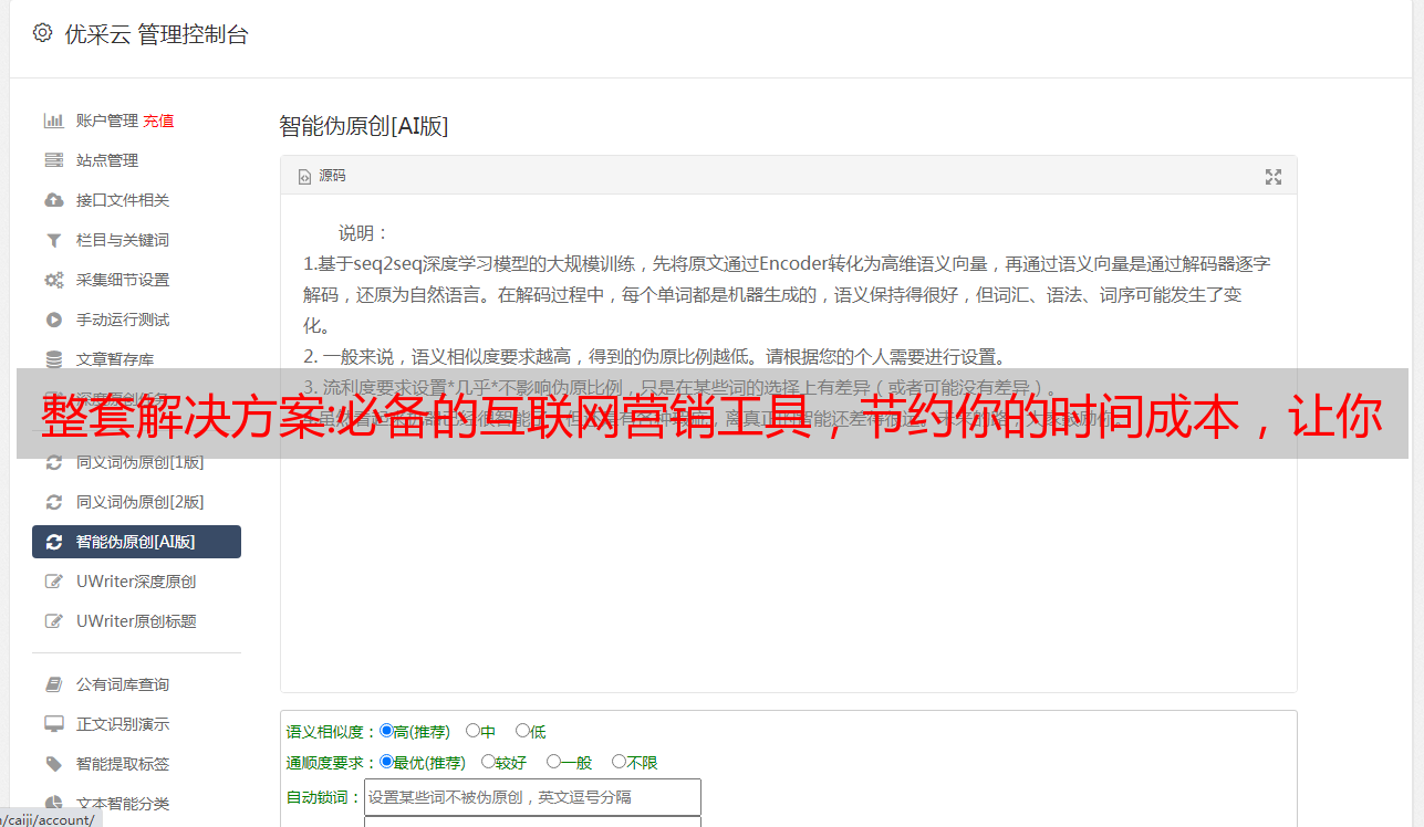 优采云 发布时间: 2022-09-28 13:29整套解决方案:必备的互联网营销工具,节约你的时间成本,让你事半功倍!