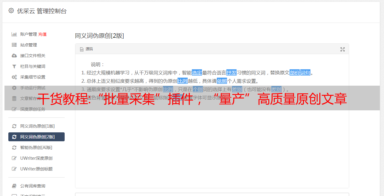 优采云 发布时间: 2022-09-28 15:23干货教程:“批量采集”插件,“量产”高质量原创文章