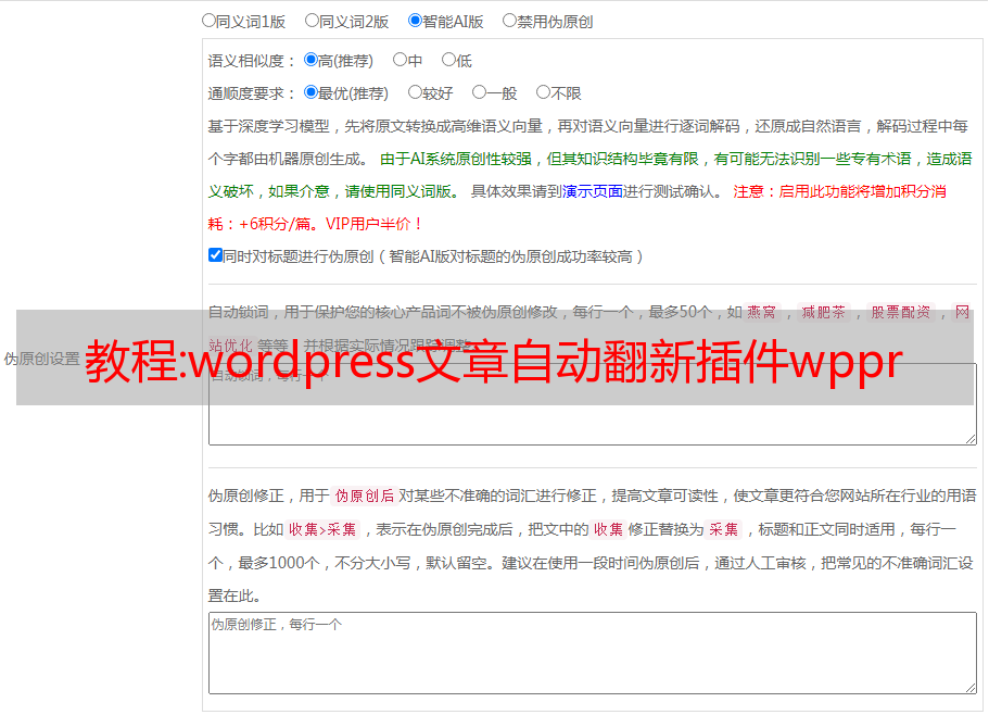 伪原创范围:伪原创仅内容或标题+内容一起伪原创