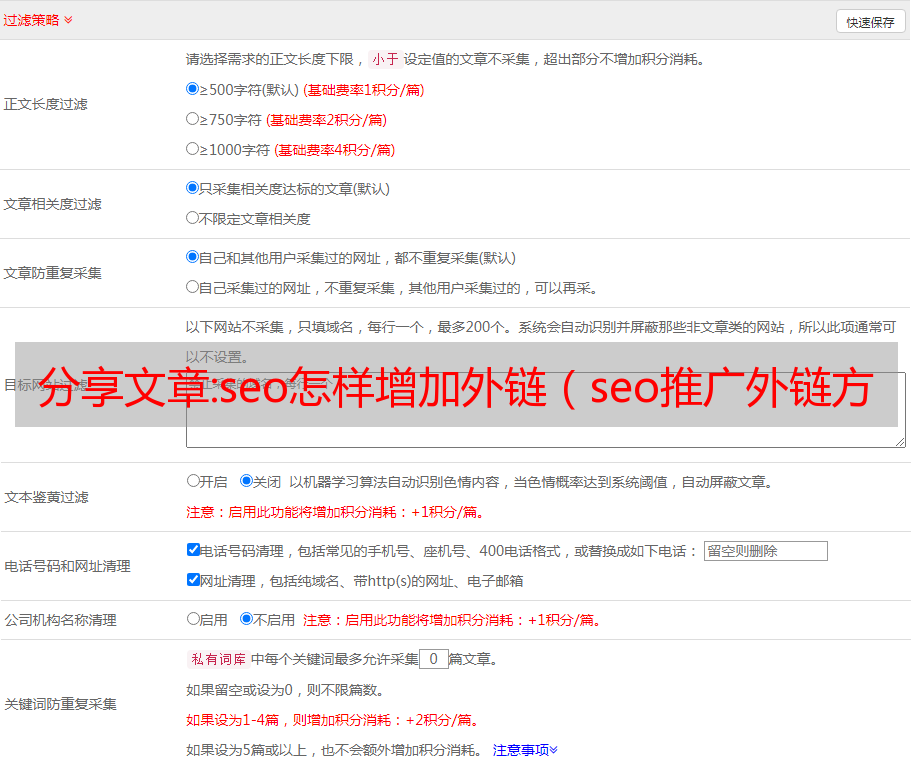 发布高质量的反向链接不仅仅是发送文章,还要发送带有目标的反向链接关键词。在提高用户好感度的情况下,满足搜索引擎的优化规则。一个高质量的 网站 反向链接远高于多个垃圾邮件反向链接。SEO 认为反向链接重视 网站 反向链接的质量,而不仅仅是数量。我们选择添加外部链接的关键词也需要在对关键词进行分析总结后添加,不要选择没有任何价值和意义的词进行链接。