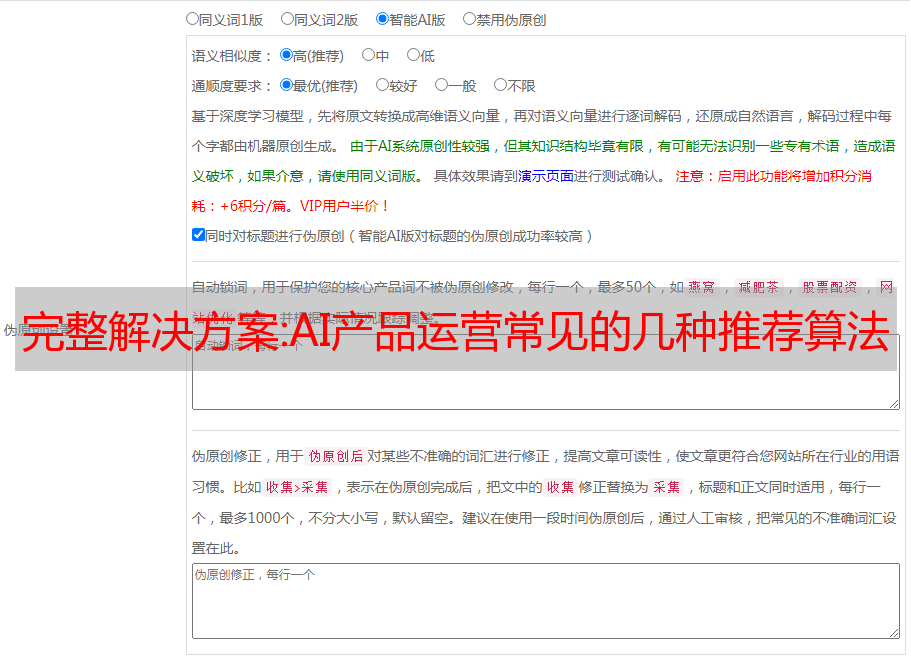 完整解决方案:AI产品运营常见的几种推荐算法