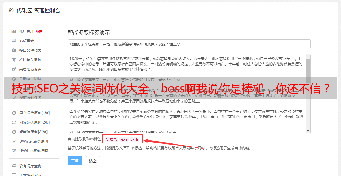 优采云 发布时间: 2022-09-29 19:12技巧:SEO之关键词优化大全,boss啊我说你是棒槌,你还不信?