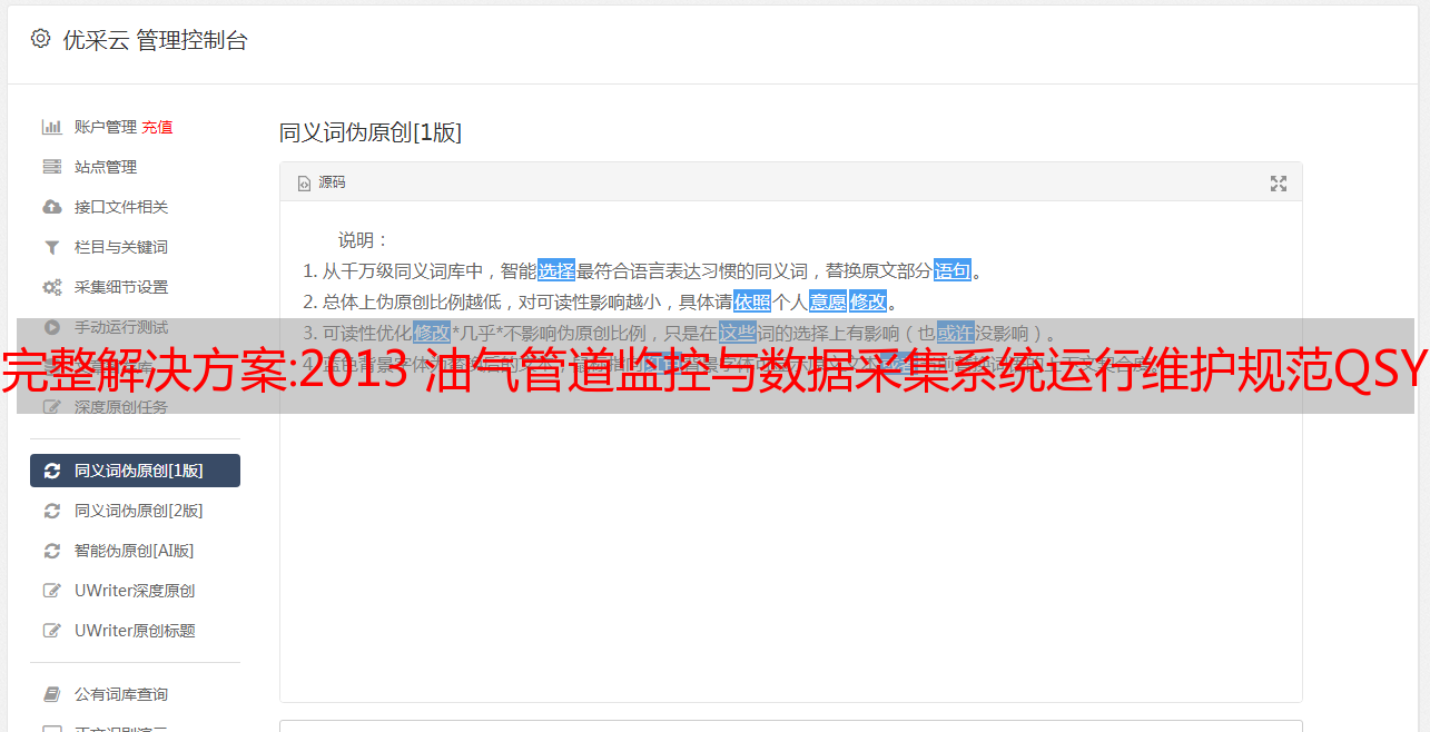 优采云 发布时间: 2022-09-29 21:15完整解决方案:2013 油气管道监控与数据采集系统运行维护规范QSY 1596