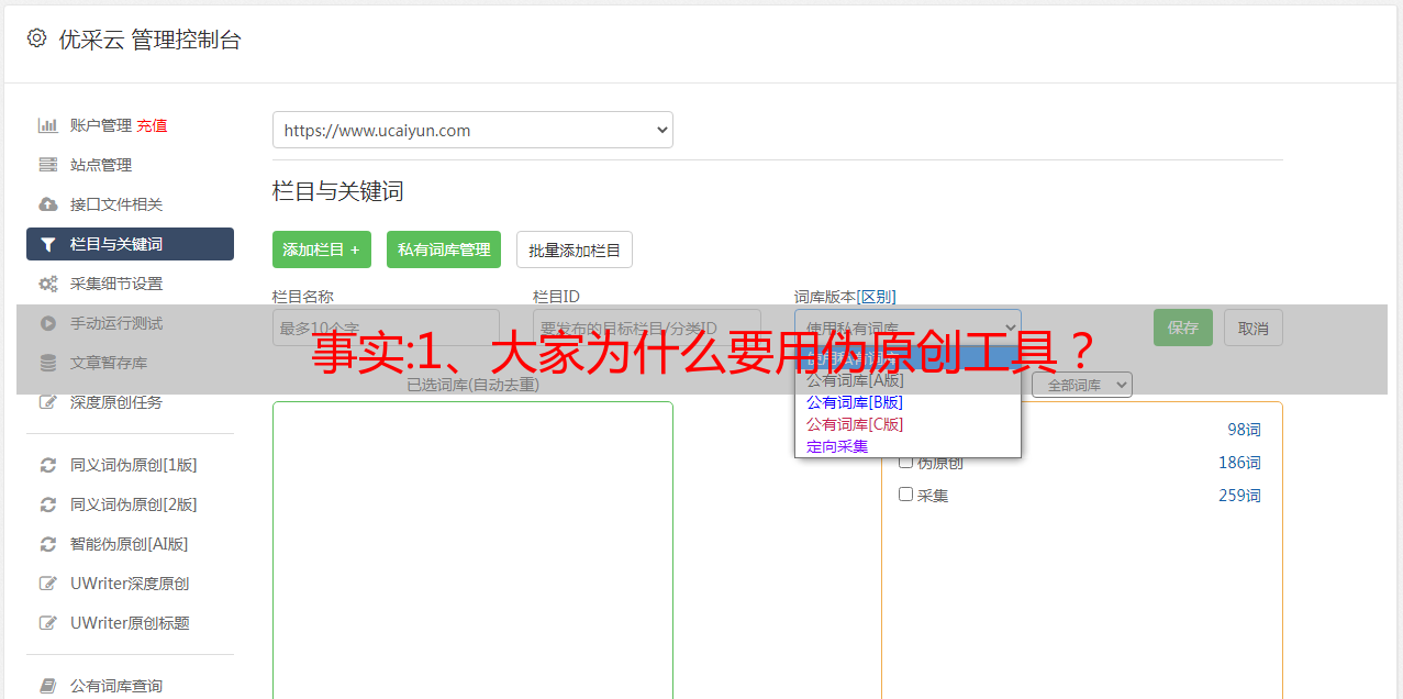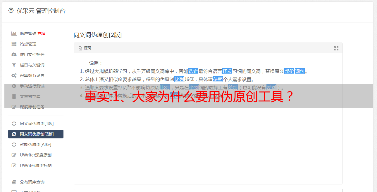 优采云 发布时间: 2022-09-30 06:06事实:1、大家为什么要用伪原创工具?