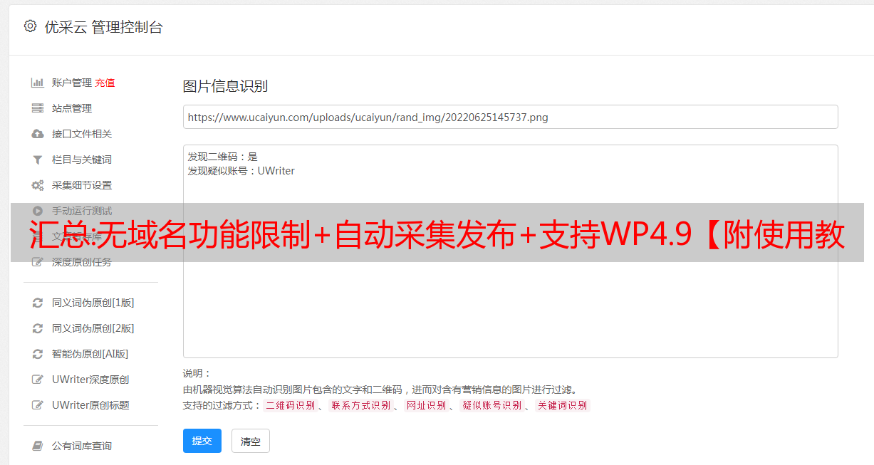 优采云 发布时间: 2022-09-30 09:13汇总:无域名功能限制+自动采集发布+支持WP4.9【附使用教程】
